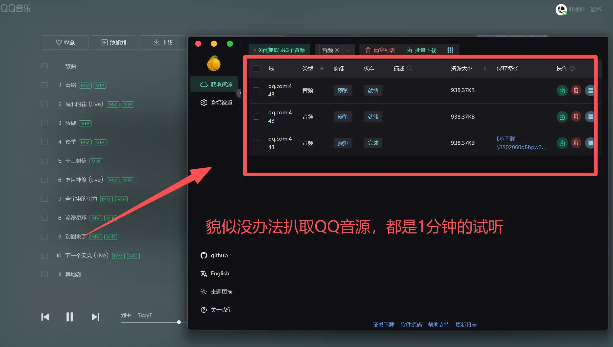 解析资源信息:提取音频的原始链接、文件大小、音质信息