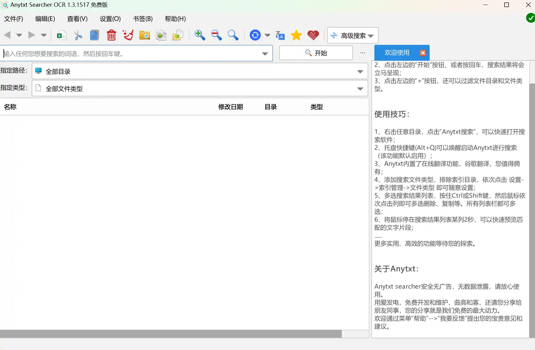 在Windows 10、8、7、Vista、XP、2003、2008、2012、2016等系统上都能完美运行。Anytxt是一款针对文档内容的搜索工具,支持搜索txt、pptx、doc、docx、xls、xlsx、ppt、pdf、jpg、png等很多格式类型的文件内容,查找时可以指定其中一种或者几种文件类型。搜索出相关文档后,右边方框可以直接预览文件、筛选、文件内再搜索、复制、翻译文字片段等,功能丰富。
